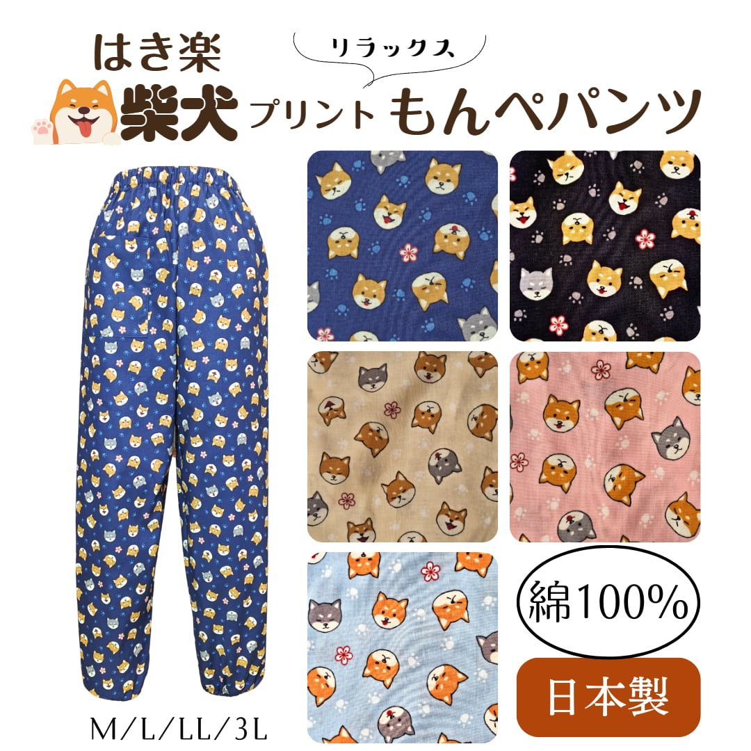 商品説明 ウエスト/総ゴム(ゴム替え口はありません) ポケット/右側前1個 混率/綿100% 生産国/日本製 カラー/ベージュ・ブルー・ピンク・ネイビー・ブラック 癒し系デザインの「柴犬プリントゆったりラクラクもんぺパンツ」は、かわいい柴犬のプリントが魅力的な、ゆったりとしたはき心地を実現したアイテムです。リラックスしたシルエットは、部屋着やパジャマ、そして軽作業にもぴったりで、心地よい時間を提供します。 サイズ ●M ウエスト64.0-70.0 ヒップ87.0-95.0 股下59.0 ●L ウエスト69.0-77.0 ヒップ92.0-100 股下60.0 ●LL ウエスト77.0-85.0 ヒップ97.0-105 股下62.0 ●3L ウエスト85.0-93.0 ヒップ102-110 股下65.0 上記のサイズは、スタッフによる平置きでの計測による実寸サイズが含まれています。 製造工程の関係上、±2㎝程の誤差があります。 ■ カラー/デザイン 愛らしい柴犬のプリントを施したこのもんぺパンツは、見た目にも愉しさを感じられるデザインです。シンプルながら使いやすいカラー展開で、部屋着やカジュアルな外出着としても大活躍します。リラックスした雰囲気を演出するアイテムです。 ■ 素材/製造国 綿100%を使用し、肌触りが良く、通気性にも優れています。心地よいはき心地を実現するために丁寧に仕立てられていますので、安心してご着用いただけます。 ■ お手入れ/取り扱い注意事項 洗濯機での洗濯が可能ですが、ネット使用をお勧めします。手軽なお手入れが可能で、いつでも快適な状態を保つことができる点がこの商品の魅力です。 ■ 発送・注文に関する情報や注意事項 ご注文後、通常1〜3営業日以内に発送を開始します。発送時には追跡番号をお知らせいたしますので、安心してお待ちください。配送には日本郵便「クリックポスト」を使用します。 ■ その他の情報や注意事項 商品に関するお問い合わせは、ショップのお問い合わせからお気軽にどうぞ。心よりお待ちしております。 この「柴犬プリントゆったりラクラクもんぺパンツ」は、リラックスした時間をサポートするアイテムです。柔らかな素材と心地よいデザインを持ち合わせたこのパンツを、ぜひあなたのワードローブに加え、癒しのひとときをお楽しみください。