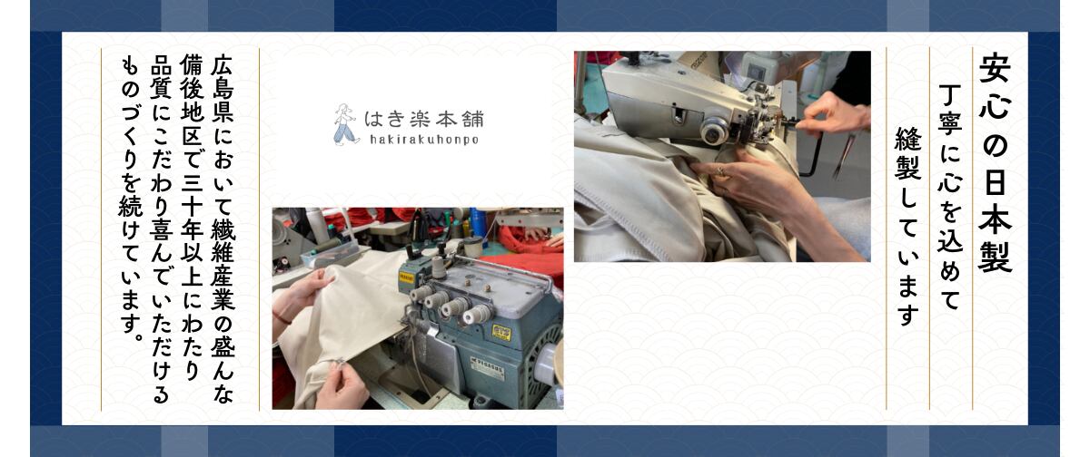 概要 通気性に優れ、快適な着心地を実現した「無地和風涼感もんぺ」。汗をしっかり吸収し、早く乾くため、季節を問わず快適に過ごせます。ゆったりとしたデザインで、動きやすくリラックスしたひとときを提供するアイテムです。 サイズ ●M ウエスト64.0-70.0 ヒップ87.0-95.0 股下58.0 ●L ウエスト69.0-77.0 ヒップ92.0-100 股下60.0 ●LL ウエスト77.0-85.0 ヒップ97.0-105 股下62.0 ●3L ウエスト85.0-93.0 ヒップ102-110 股下65.0 上記のサイズは、スタッフによる平置きでの計測による実寸サイズが含まれています。製造工程の関係上、±2㎝程の誤差があります。 柄/デザイン シンプルで飽きの来ない無地デザインは、どんなスタイルにも合わせやすく、普段使いからお出かけまで幅広く活躍します。 素材/製造国 高品質な綿100%を使用しており、日本国内で丁寧に製造されています。肌にやさしく、涼しさを感じさせる素材感が魅力です。 ■ お手入れ/取り扱い注意事項 洗濯機での洗濯が可能ですが、ネット使用をお願いします。お気軽にお手入れができるのも魅力の一つです。 発送・注文に関する情報や注意事項 ご注文後、通常1〜3営業日以内に発送いたします。配送状況については、追跡番号をお知らせいたしますのでご安心ください。日本郵便「クリックポスト」を使って発送いたします。 その他の情報や注意事項 ご不明な点がございましたら、ショップのお問い合わせからお気軽にどうぞ。心よりお待ちしております。 この「無地和風涼感もんぺ」は、快適に過ごすための必需品です。通気性の良さと汗を吸う機能が心地よさを提供し、リラックスしたデザインが日常生活を一層楽しくしてくれるでしょう。家庭でのリラックスタイムや、ちょっとしたお出かけでも、その良さを実感できます。