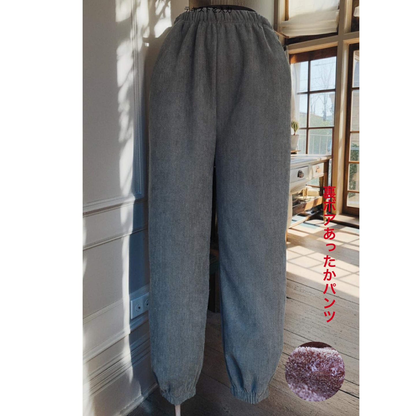 裏ボアコール天サルエルパンツ