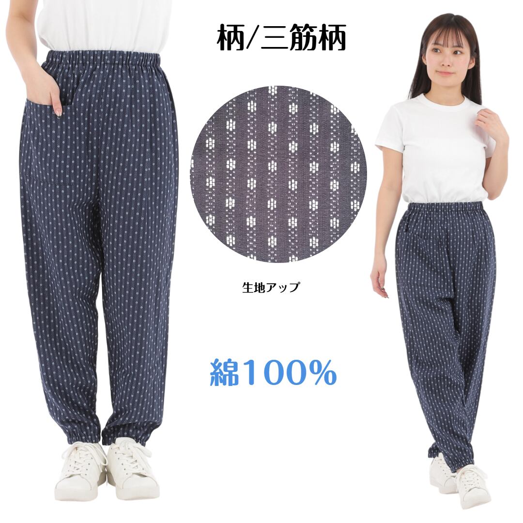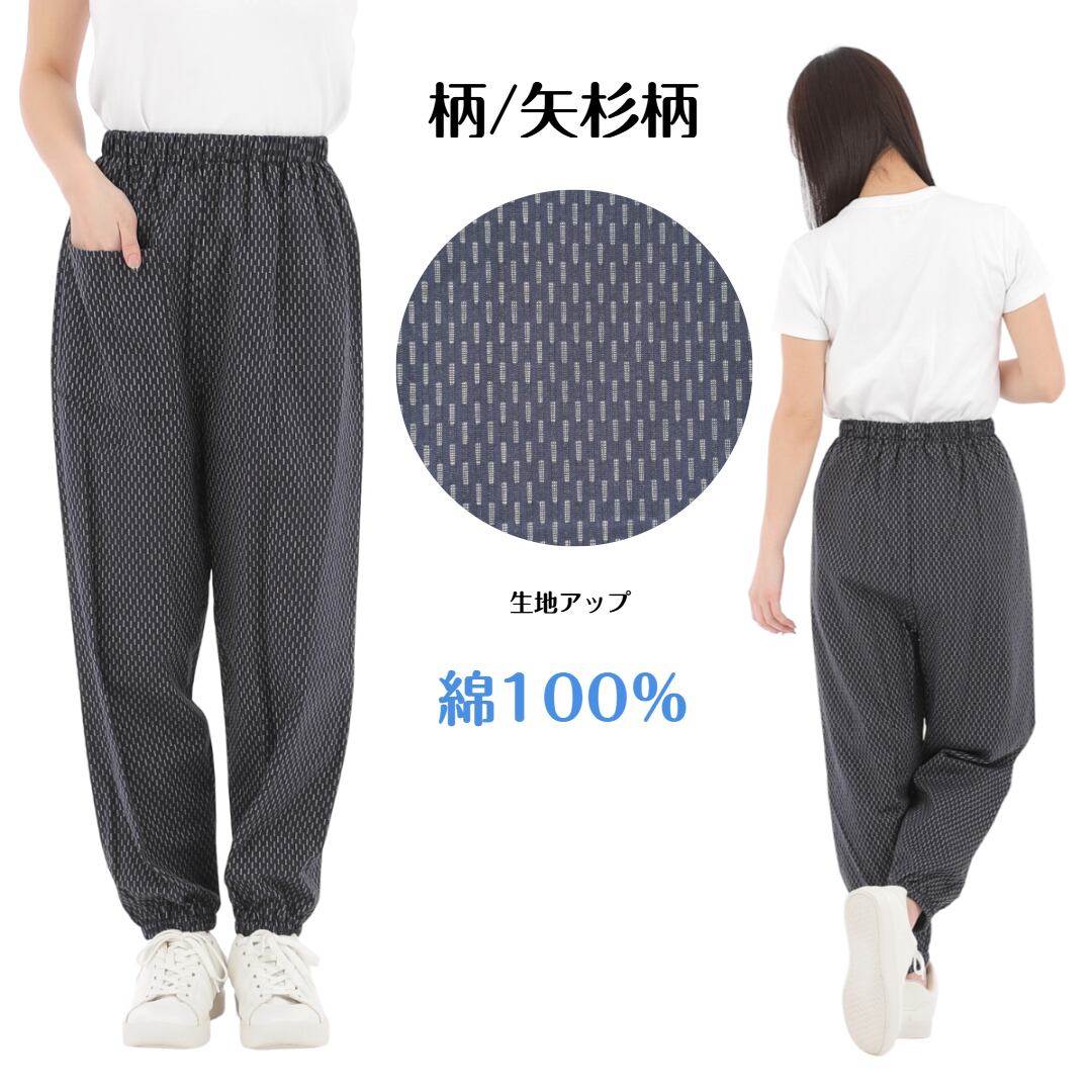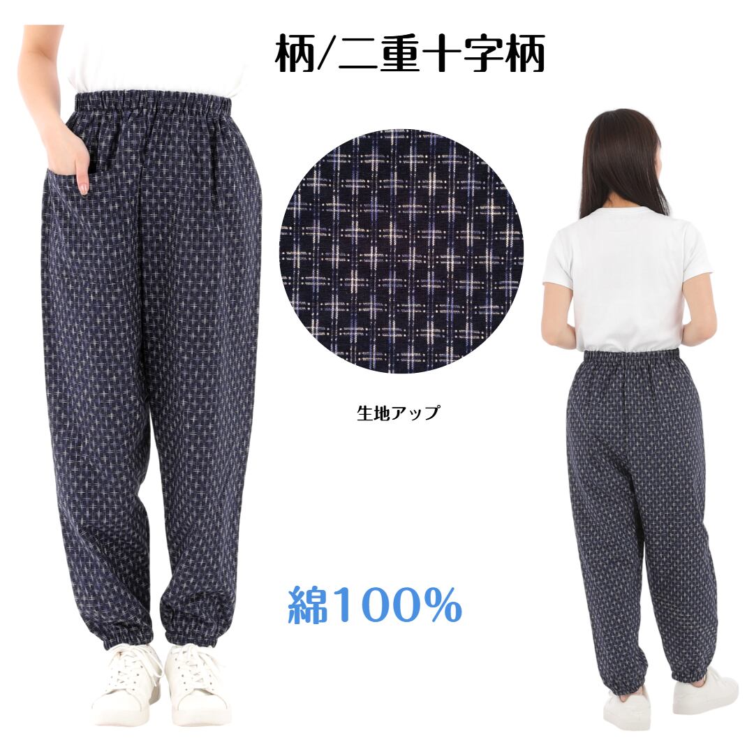 綿100%刺し子柄もんぺパンツ