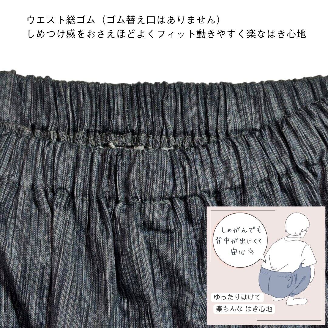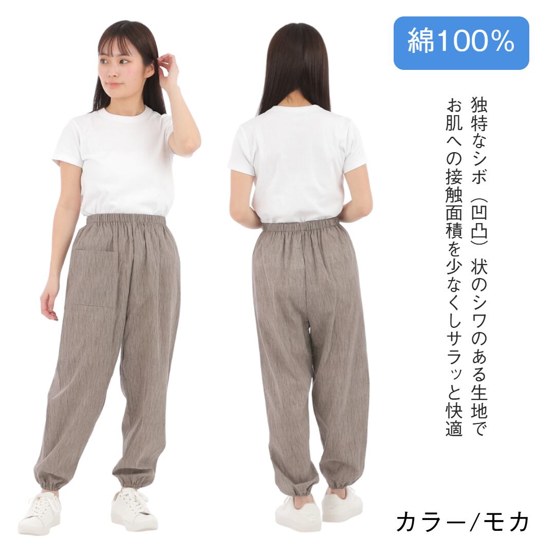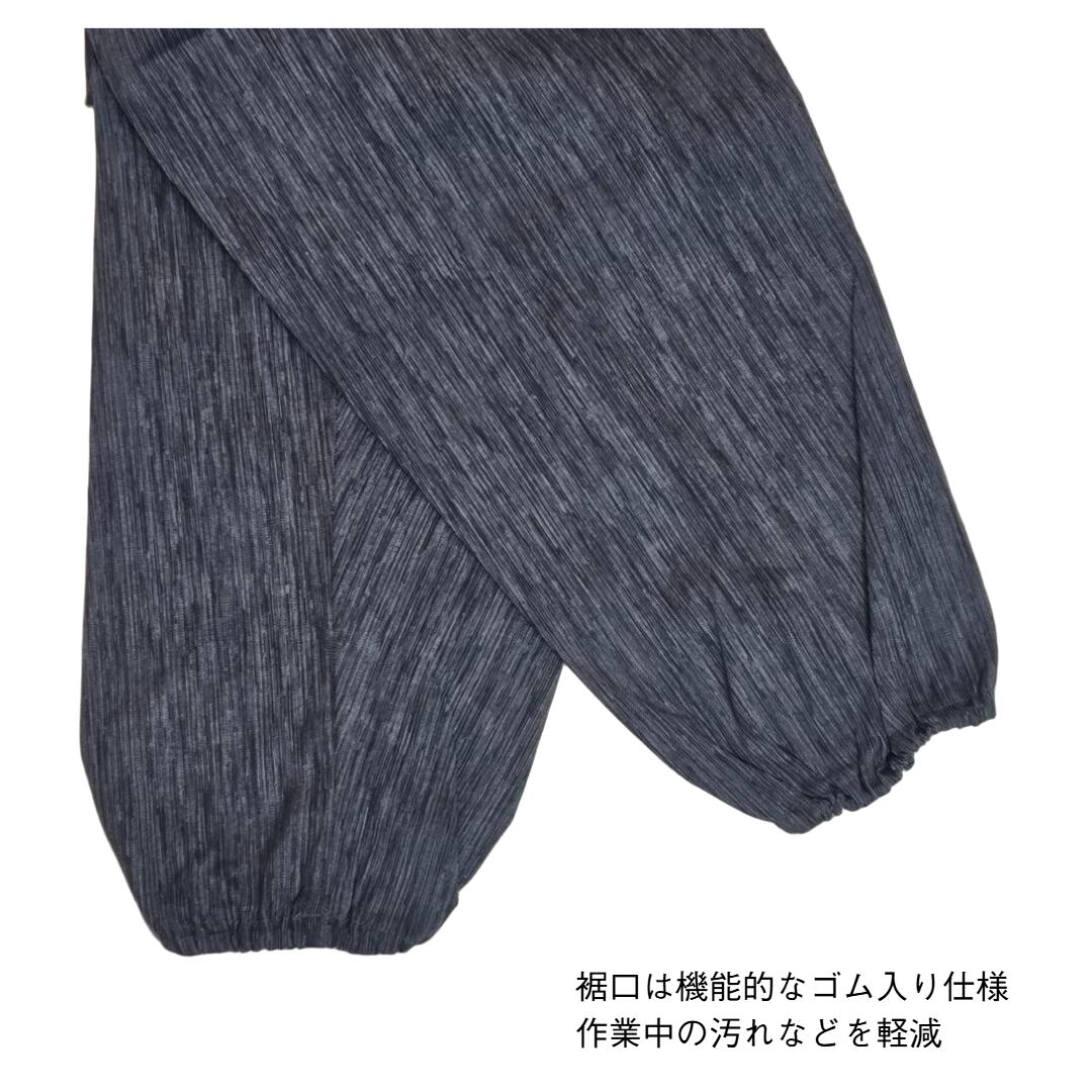 涼しさとゆったりとした着心地を叶えた「高島ちぢみ涼感もんぺ」は、最高品質の綿100%素材を使用しています。通気性に優れ、快適な着用感を実現。特に暑い季節にぴったりで、日常のリラックスタイムやお出かけそして作業まで幅広いシーンで活躍します。