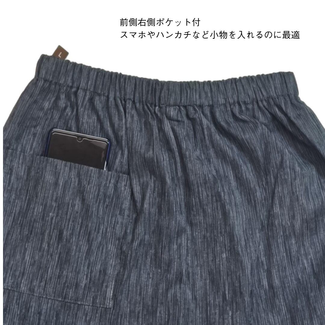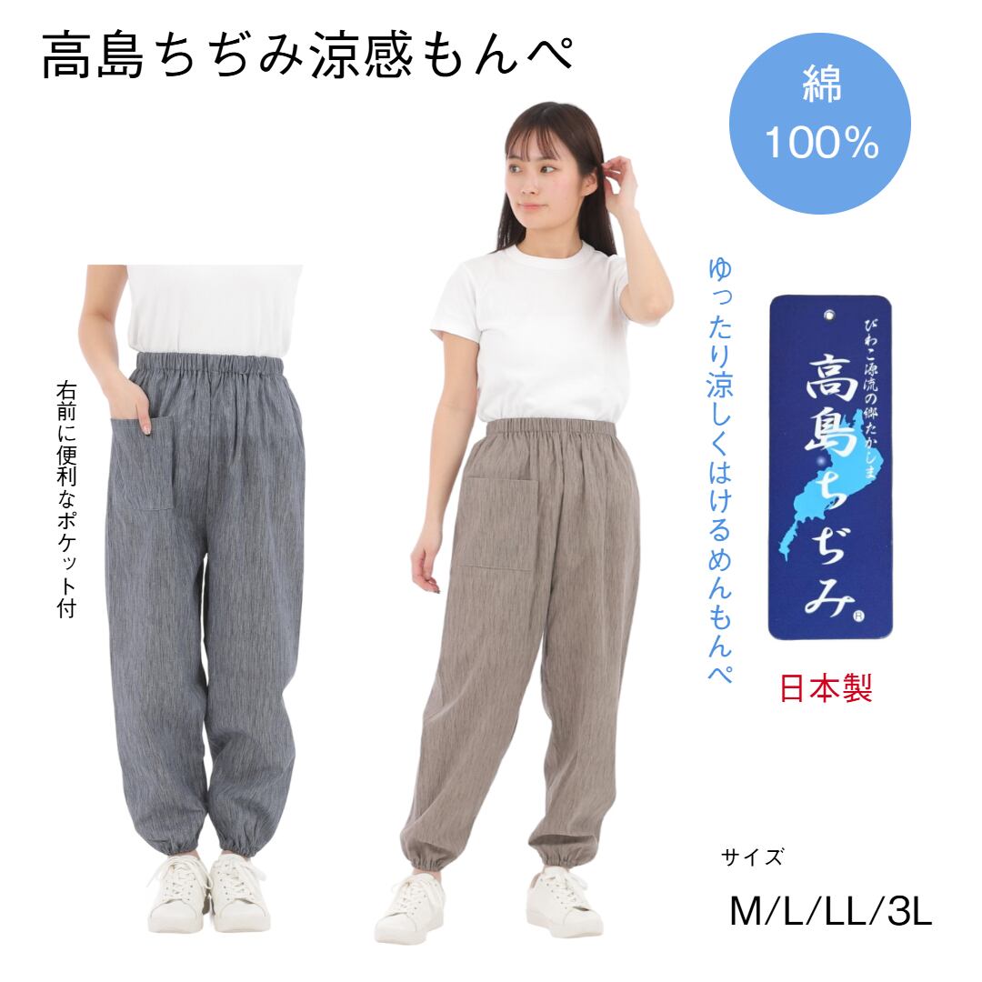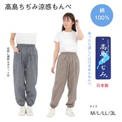 この「高島ちぢみ涼感もんぺ」は、織物に独特なシボ(凹凸)をつくり、肌への接触面積を少なくし、サラッとした肌触りで吸汗性に優れ、高温多湿な日本の風土の適した爽やかな肌ざわりの涼感素材です。また、快適さとデザイン性を兼ね備えたアイテムで、リラクシングなひとときを提供します。暑い季節でもさらっとしたはき心地を楽しめるこのもんぺを、ぜひお試しください。