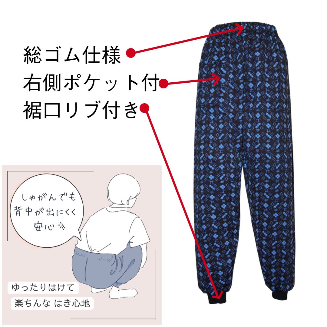 寒さからしっかりと守る「あったか裏起毛かすり柄裾リブ付きもんぺパンツ」は、裏起毛素材によりしっかりとした暖かさが魅力です。やわらかいかすり柄とゆったりとしたシルエットが特徴で、リラックスした時間を過ごすための日常着や部屋着、作業着にぴったりなアイテムです。