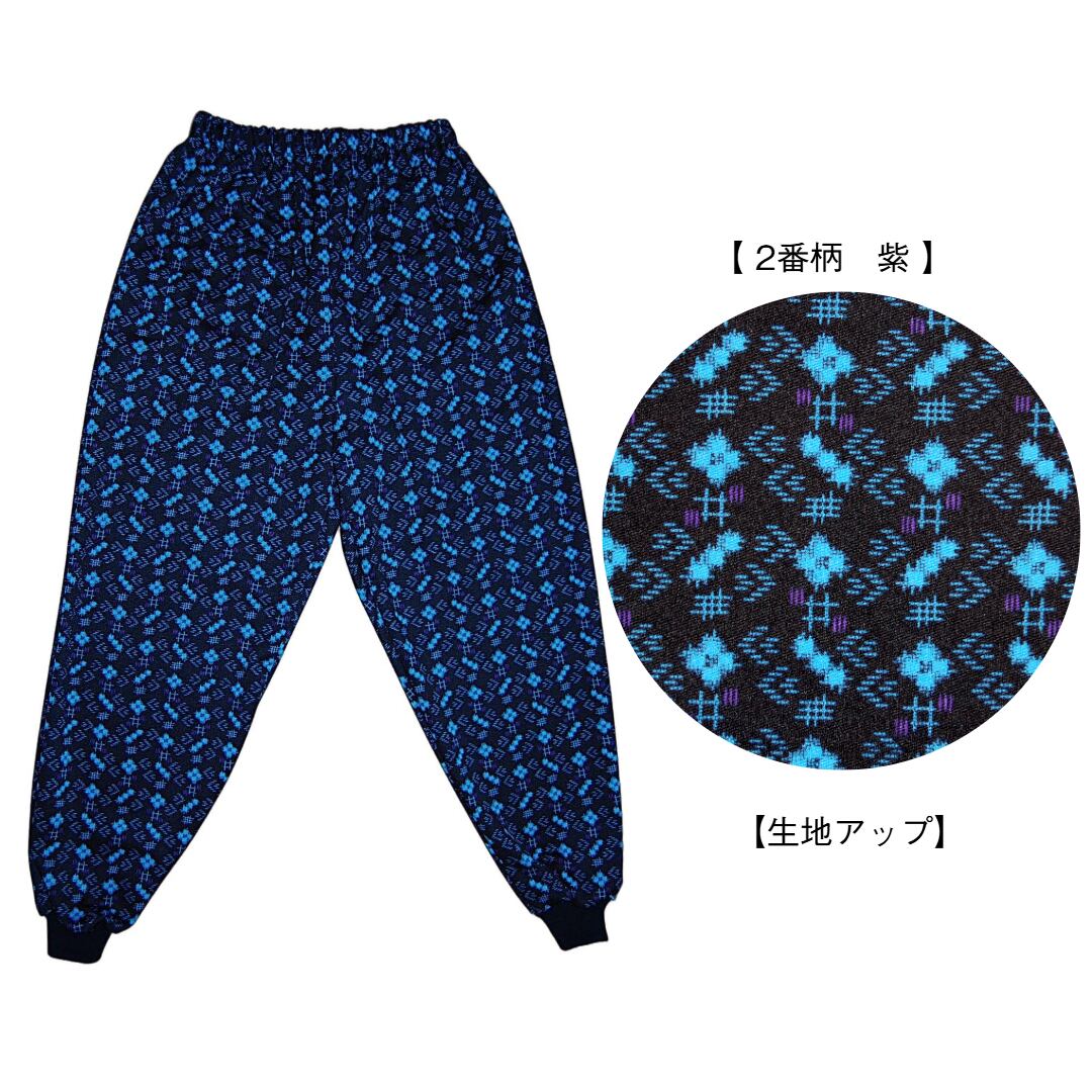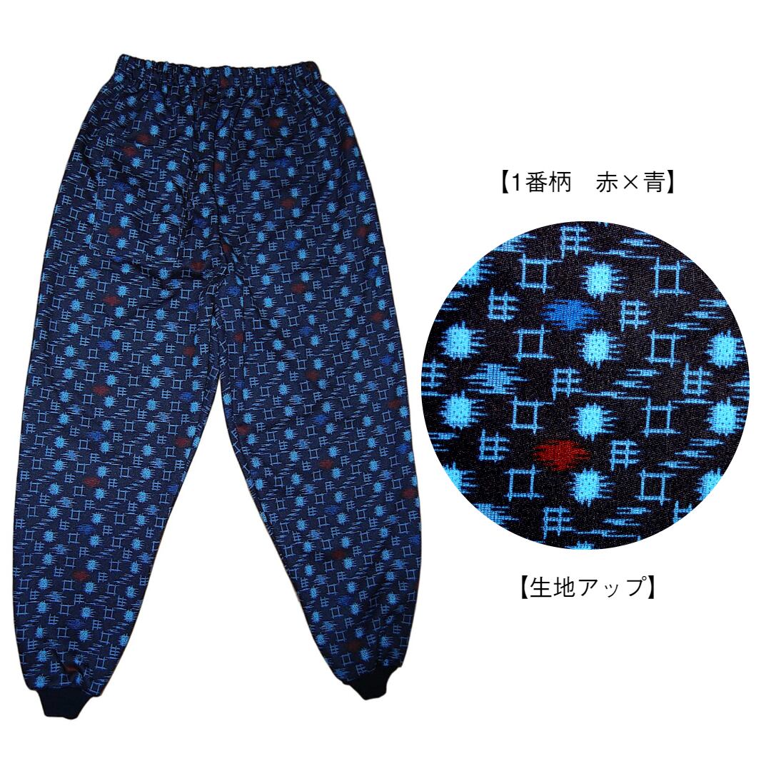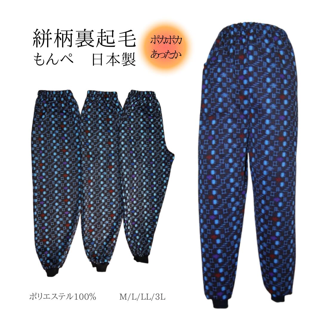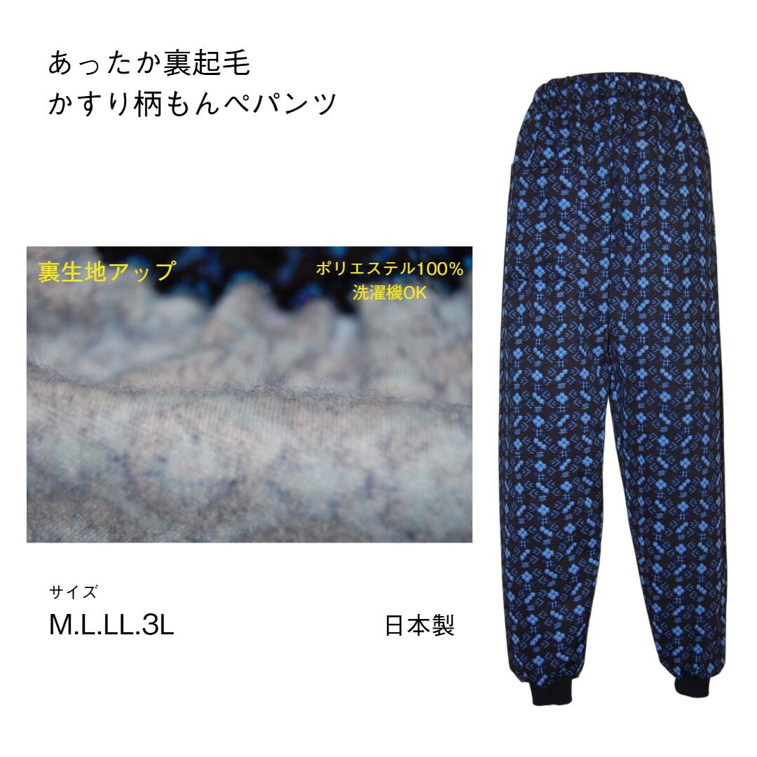 あったか裏起毛かすり柄裾リブ付きもんぺパンツ