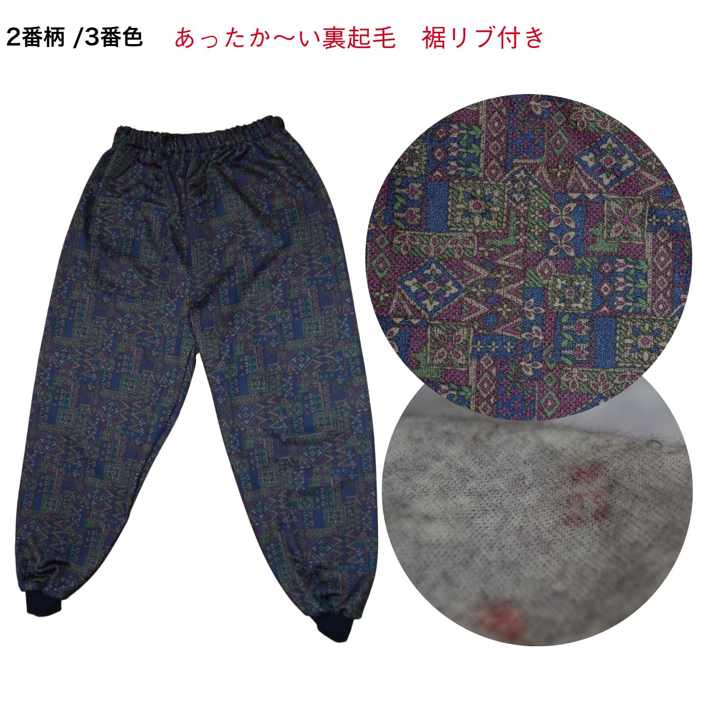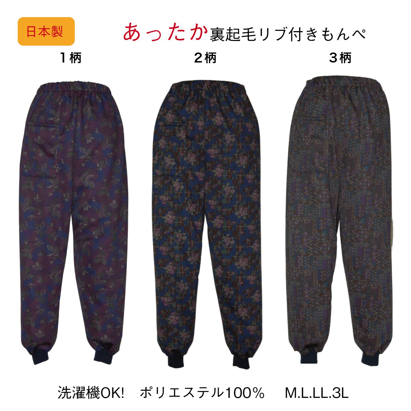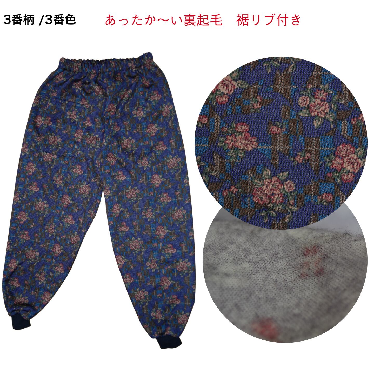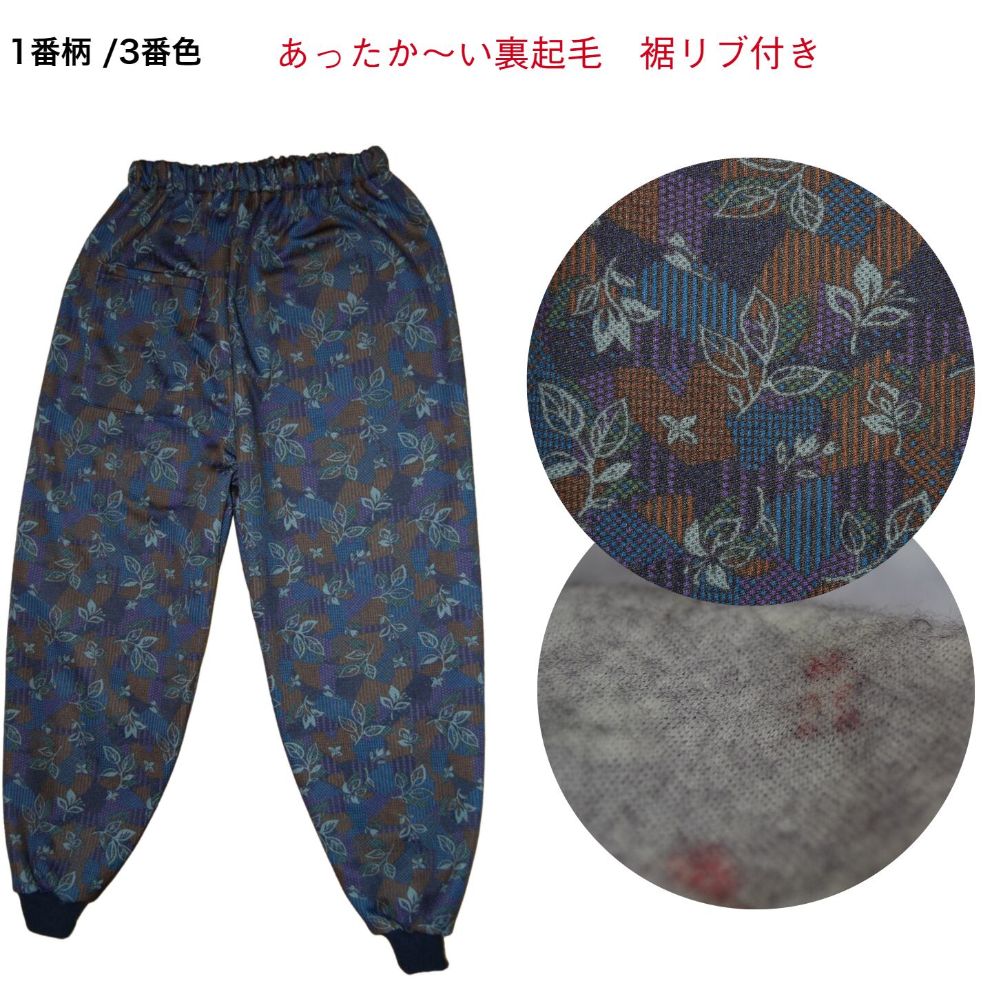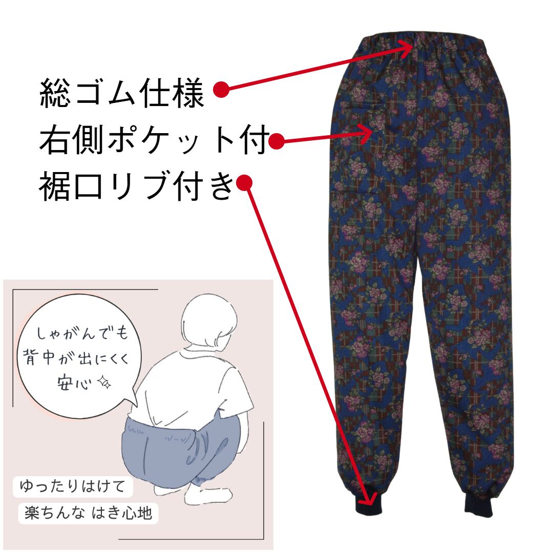 あったかゆったり裏起毛裾リブ付きもんぺパンツ