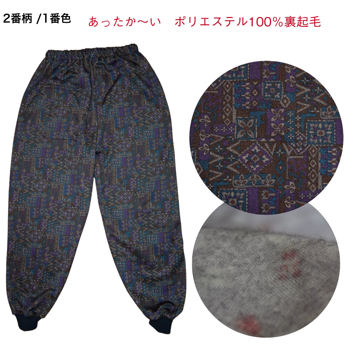 高品質なポリエステル100%を使用し、裏起毛による優れた保温性を実現しています。国内生産にこだわり、丁寧に仕立てられているため、安心してご着用いただけます。